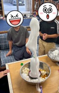 2025年9月の活動記録 お知らせ 2025.10.032025.10.27 9月1日 フルーツサンド作り🍎🍌 美味しい😋 9月2日 みんなの夢をかなえよう😆 みんながどうしてもやりたかったことメントスコーラ実験!みんな大喜び😊 フルーツポンチにしていただきました😋 9月8日 工作DAY キャンドル作りをしました🐢 ブロック作りも❗️ 宿題も頑張ったよー👍 9月12日 サンドイッチ作り🥪 9月16日 地図の勉強❗️ 沖縄の地名もバッチリです!すごい👍 9月19日 公園にお出かけ🛝 9月22日 メロンパン作り🥖 上手にできました😆 材料を混ぜてー もよう付けが上手✨ いい感じ❗️ 9月25日 工作DAY おもちゃ作りをしました 上手にできました✨ 9月30日 バームクーヘン作り バームクーヘン作りに挑戦しました❗️ 「ぽーぽー」に似てるかな? いい感じ😊